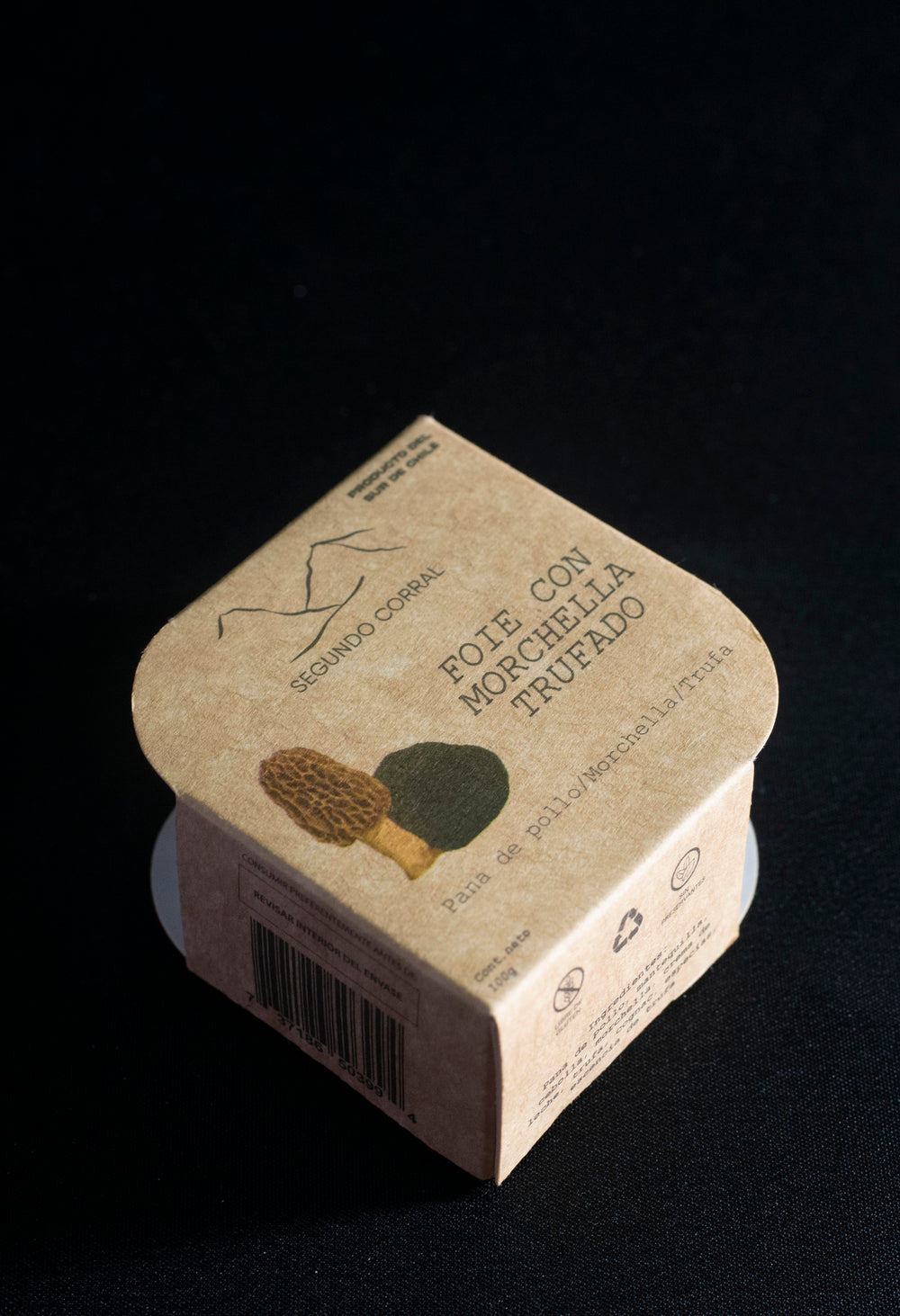 Suave hígado de pollo acompañado de morchela y trufa, recolectada por comunidades locales de Segundo Corral (Puelo). 100% natural. Sin preservantes.